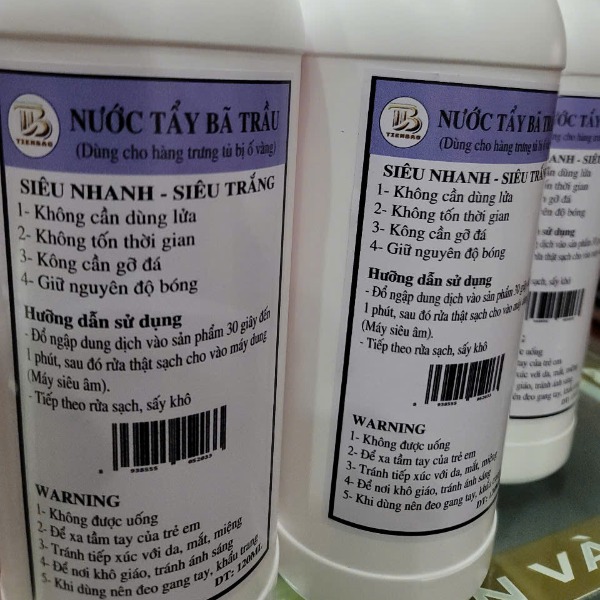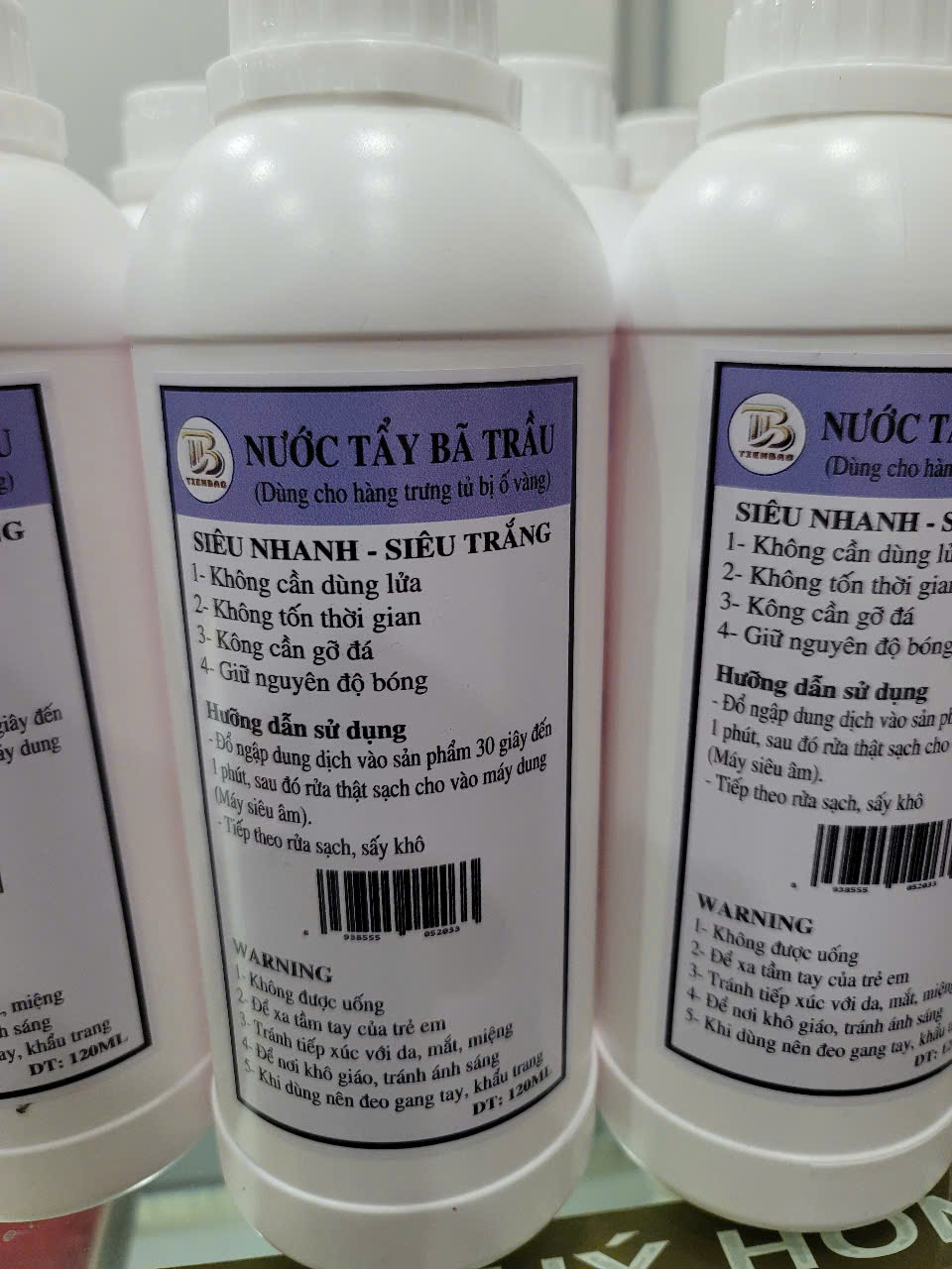 - Đổ ngập dung dịch vào sản phẩm ngâm 30s - 1 phút , sau đó rửa thật sạch cho vô máy rung 30 giây rồi rửa sạch , xì khô.